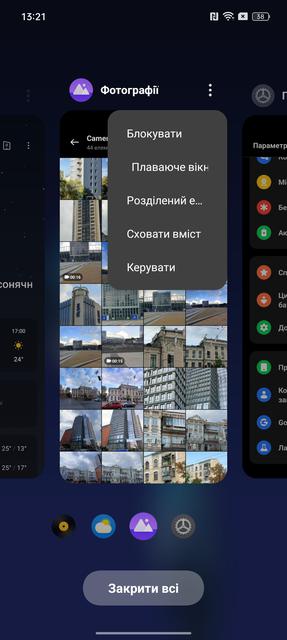 Диспетчер програм зроблений у вигляді стандартної горизонтальної каруселі. Є режим розділеного екрану, а також можливість відкривати застосунки у вікні.