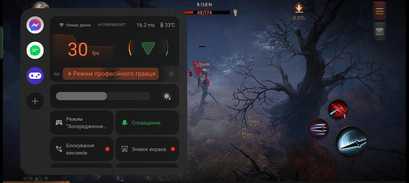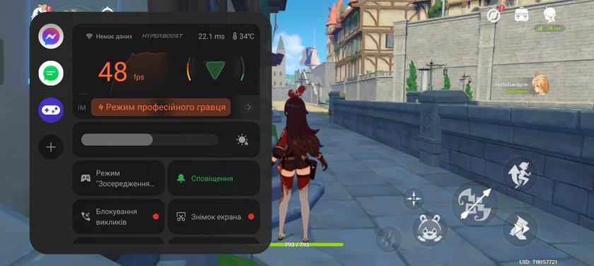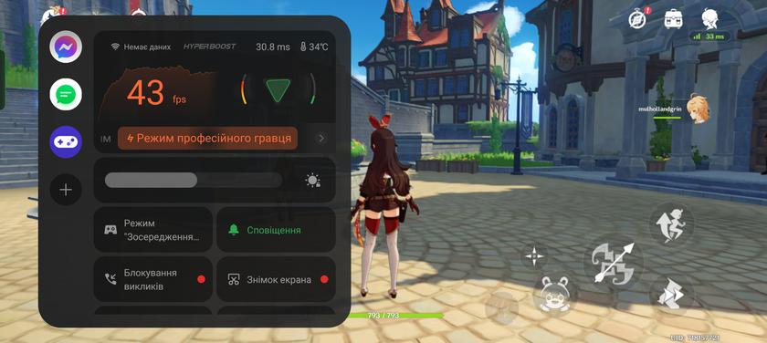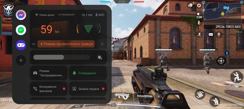 В сучасні ігри на realme 11 Pro+ грати цілком можливо. Call of Duty Mobile на високих налаштуваннях працює зі стабільними 60 FPS, Diablo Immortal — високі налаштування графіки, 30 FPS, Genshin Impact — 40-50 FPS з періодичними фрізами на середніх налаштуваннях.