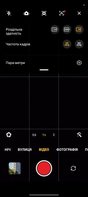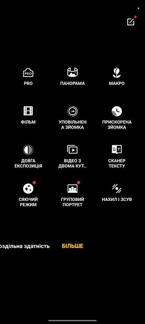Застосунок нічим особливим не відрізняється. Стандартна карусель режимів, окремий розділ з додатковими режимами та набір базових налаштувань зразу на екрані (спалах, зум, формат тощо).