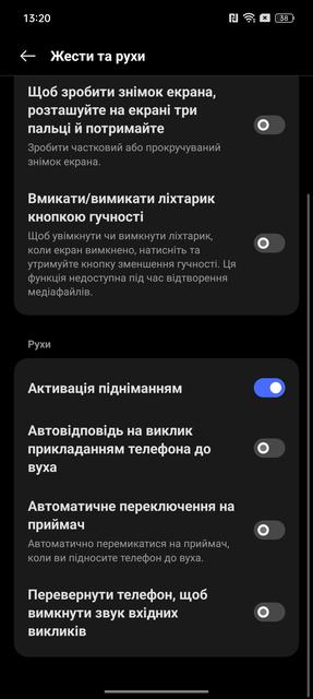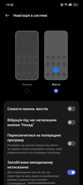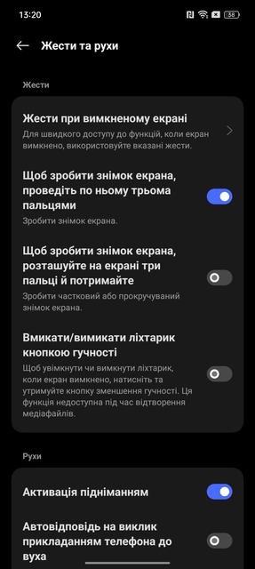 Окрім стандартного вибору між кнопковою та жестовою навігацією, є низка додаткових жестів по активному та вимкненому екрані. Швидкий запуск камери, програм та керування відтворенням музики тощо