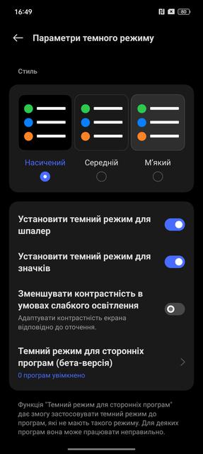 realme 11 Pro+ працює на ОСAndroid 13 з фірмовою оболонкою realme UI 4.0. Оболонка не вносить у логіку Android кардинальних змін, тож все звично і зручно. Основні зміни стосуються зовнішнього вигляду та деяких додаткових функцій. Оболонка досить добре оптимізована, працює швидко і критичних помилок чи багів не спостерігається. Доступно три види відображення: лише робочі столи, робочі столи з окремим меню застосунків, а також спрощений режим. Сітку програм та робочих столів можна налаштовувати, доступні віджети, різні теми оформлення, шпалери та кастомізація піктограм.