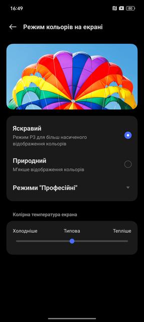 Екран дуже хорошої якості, з насиченими кольорами та запасом яскравості достатнім для комфортного використання на літньому сонці. Картинка не вигорає і залишається комфортною. Кути огляду максимальні, хоча є типова для AMOLED особливість: мінімальний зеленкуватий відтінок білого під певними кутами. Апаратні вимірювання показали, що екран дійсно якісний і лише трохи поступається по яскравості флагманським моделям. У яскравому режимі максимальна яскравість складає 472.278 кд/м². Колірне охоплення дійсно значно ширше, ніж стандартний sRGB. Точність передачі кольорів досить непогана, перехилення до холодних відтінків мінімальне.