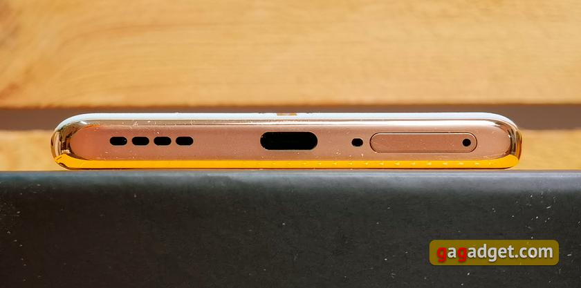 Знизу — роз'єм Type-C, основний зовнішній динамік, ще один мікрофон та лоток.