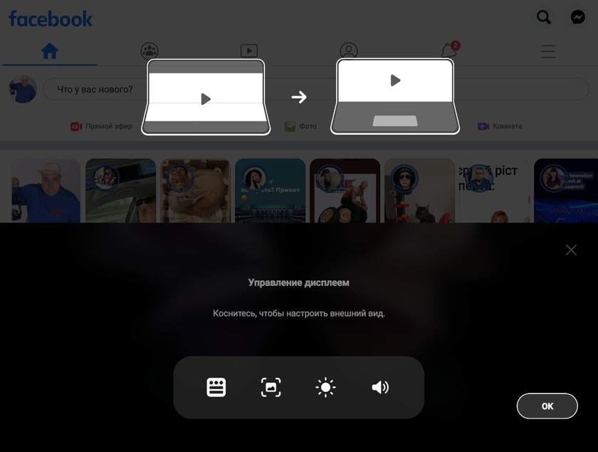 Ще одне нововведення Ome UI версії 3.1.1 – це дублювання зовнішнього екрана на робочому столі. Це простий перемикач, який знаходиться в меню Головного екрана (до речі, у моїй версії прошивки переклад виглядає дивно – «дублювання екрана чохла», в цьому випадку cover – це не чохол, а зовнішній дисплей).