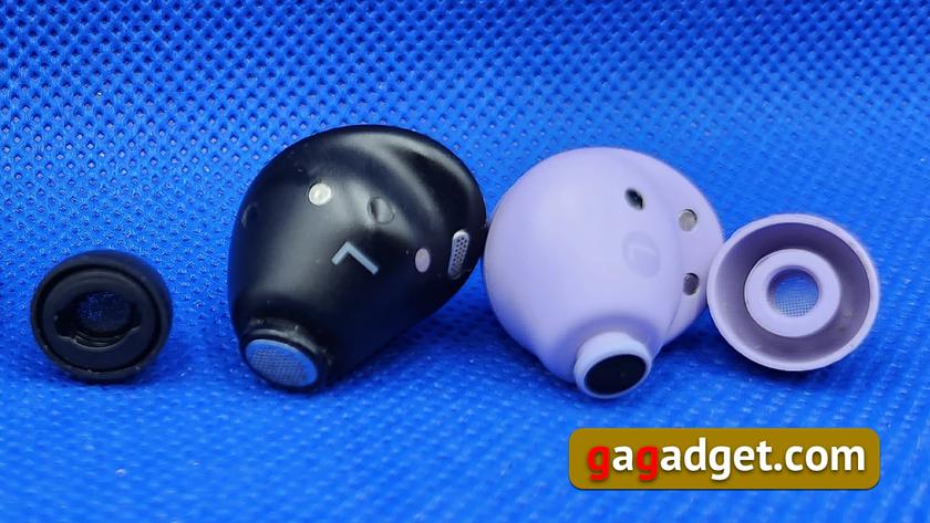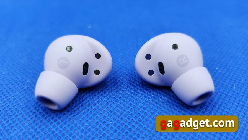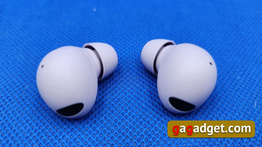 Під час презентації йшлося про поліпшену на 40% систему шумозаглушення. Звідки взята ця цифра? У перших Buds Pro один із мікрофонів отримав захист від шуму вітру. У Buds2 Pro такий захист отримали всі три мікрофони. Ви ж пам'ятаєте, що система шумозаглушення в обох Buds Pro використовує три мікрофони? - Один для голосу, другий (на зовнішній стороні корпусу) і третій (усередині, поруч із динаміком) для відсікання шуму. Площу вітрового щитка у Buds2 Pro було збільшено вдвічі, в результаті співвідношення сигнал/шум вдалося поліпшити на ті самі 40%.
