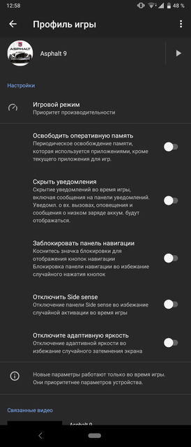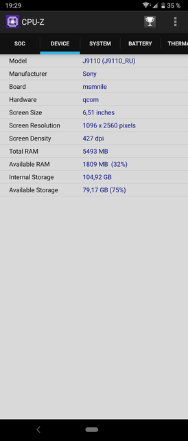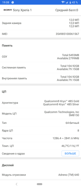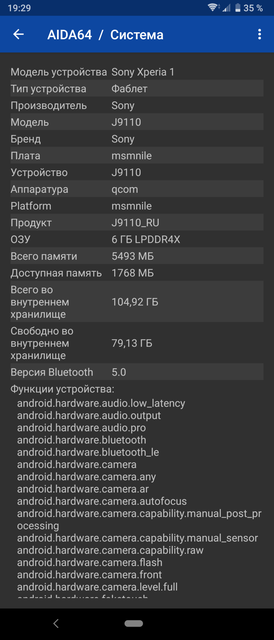 Sony Xperia 1 - флагманський смартфон і, знаючи Sony, ніяких варіантів по "залізу" і бути не могло. Всередині - топовий восьміядерний Qualcomm Snapdragon 855, який включає в себе ядра 1x2.84 ГГц ядро Kryo 485, 3x2.41 ГГц Kryo 485 і 4x1.78 ГГц Kryo 485 і графічний прискорювач Adreno 640. Оперативної пам'яті - 6 ГБ, вбудованої - 128 ГБ стандарту UFS. Так що з продуктивністю все відмінно. Всі ігри та програми в будь-яких кількостях "літають". Частина ігор вже підтримують 21: 9 і виглядають відмінно. Зокрема PUBG Mobile, Arena of Valor, Asphalt 9 і Fortnite. Мабуть з цієї причини вони були встановлені на смартфон. Решта "обрізаються", але це не критично: