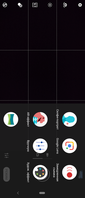 Додаток камери дуже близьке до минулих пристроїв. Перемикання між фото і відео виробляється свайпами, зліва є швидкі налаштування спалаху, співвідношення сторін, таймера, балансу білого, кнопка перемикання між основною і фронтальною камерами і перехід в режим розмиття заднього фону. На основний екран винесена кнопка перемикання камер: основна, 2х зум і ширококутна. Додаткові режими доступні в окремому меню в правому нижньому кутку. Там же є кнопка швидкого доступу до останнього режиму, який використовувався. До додатку є ряд питань: немає окремого нічного режиму і можливості в автоматичному режимі примусово включити HDR, це можливо тільки в ручному. Не зовсім очевидно зроблено включення надширококутної камери, знайшлося тільки методом "наукового тику":