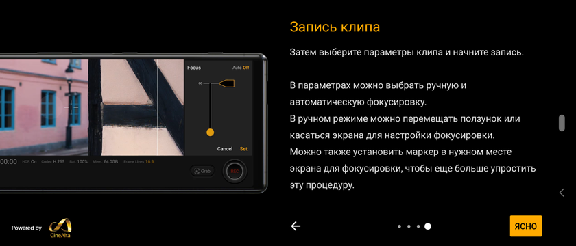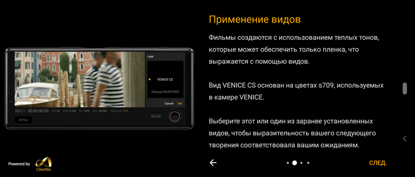 Додаток Cinema Pro буде цікаво затятим ігроманам. Воно дозволяє повністю вручну виставляти налаштування для відеозапису. Інтерфейс схожий з професійними камерами Sony CineAlta. У додатку є спеціальні пресети, які разом з форматом 21: 9 можуть додати кінематографічності. Я в цих всіх тонкощах не розбираюся, так що стандартний додаток камери мені більше до душі.
