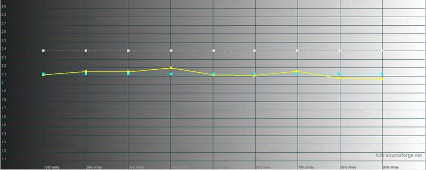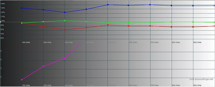 У стандартному режимі максимальна яскравість склала 362.209 кд / м 2, яскравість чорного поля - 0 кд / м 2, а статична контрастність прямує до нескінченності (як у всіх OLED). Передача кольору трохи з ухилом в холодні відтінки, обхват кольору значно ширше sRGB: