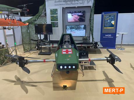 Представлені квадрокоптери MERT для транспортування поранених та доставки медобладнання.