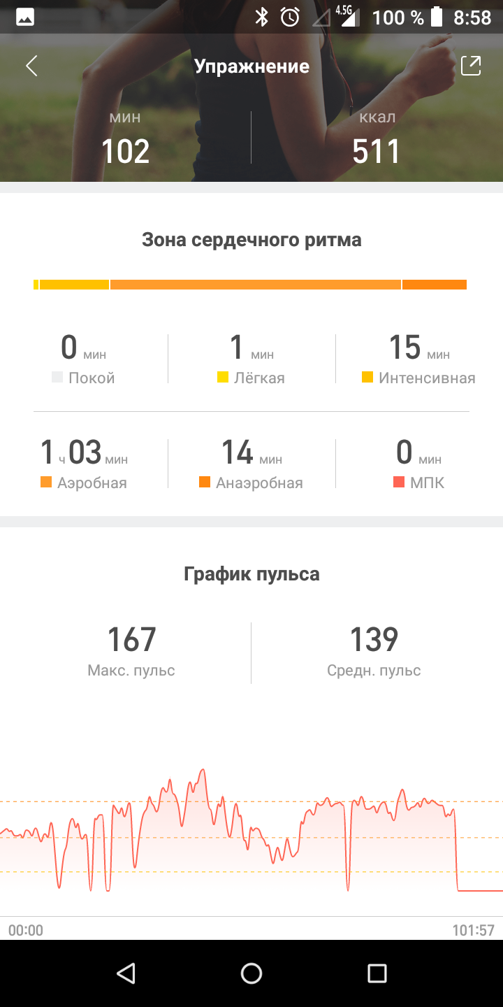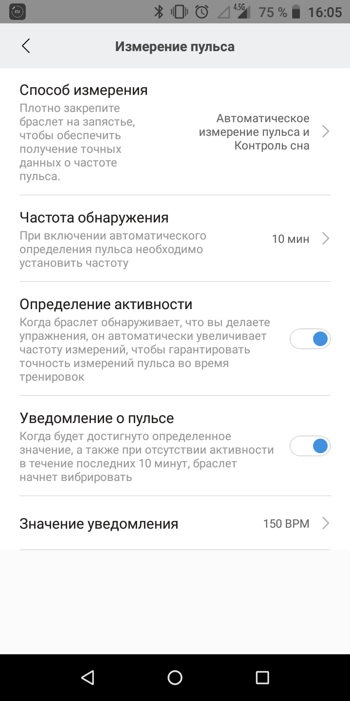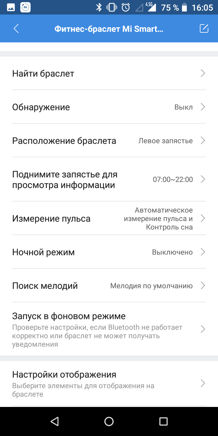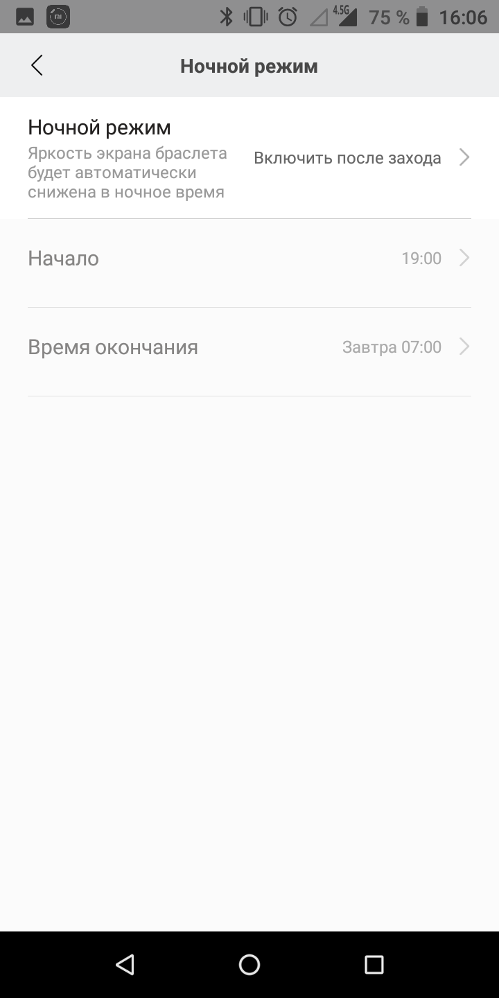 До речі про яскравість екрану. Автоматичного регулювання немає, в меню браслета є п'ять градацій, і в особливо сонячний день літа на вулиці доводиться викручувати на максимум вручну. Втім, з настанням похмурої погоди середня яскравість стає комфортною і в приміщенні, й на вулиці.
