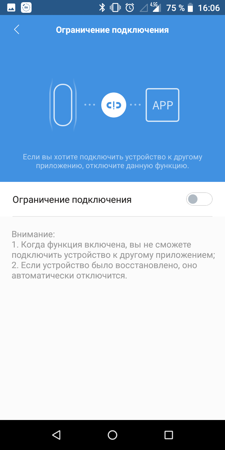 Не знаю, чи з'явилося це в цій моделі або раніше, але я відзначила для себе, що тепер в налаштуванні браслета є опція, яка дозволяє підключати його до іншого телефону, не відключивши від цього. В свій час я втратила Mi Band 2 через те, що у мене вкрали смартфон, і після цього браслет перетворився на гарбуз. Тепер цього можна уникнути. Так як платіжний додаток з цим пристроєм не працює (є підтримка AliPay, але це свято життя не для нашої країни), то додаткові ризики за собою це не несе.