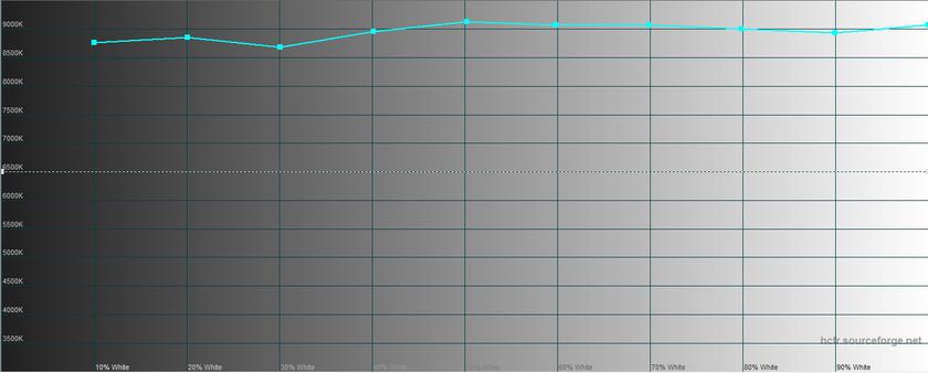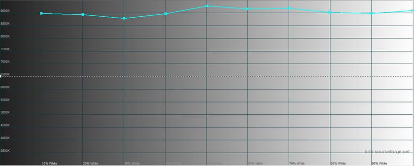 Яркостные и цветовые характеристики дисплея были измерены для всех трёх вариантов. В стандартном цветовой охват сильно расширен в сторону зеленого в сравнении с цветовым пространством sRGB, цветовая температура стабильна, но сильно завышена (до 9000К при эталонном значении 6500К), а цветовая ошибка достигает 9,41 при среднем значении 7,52: