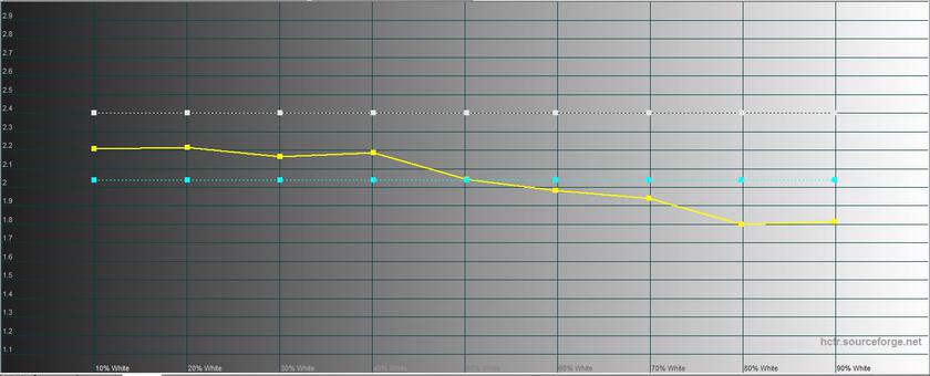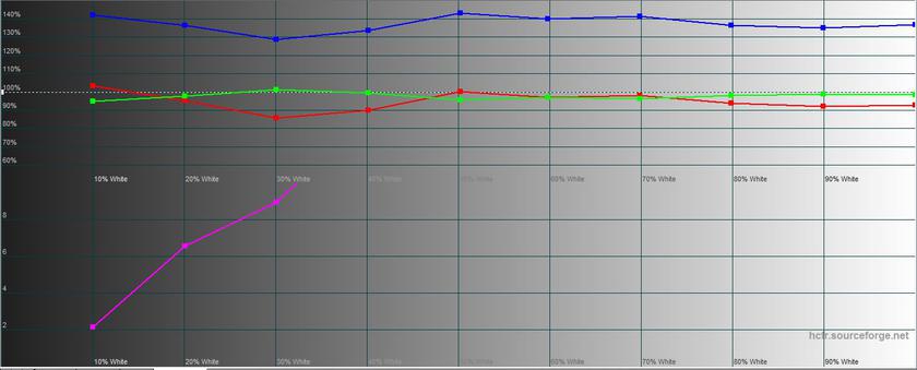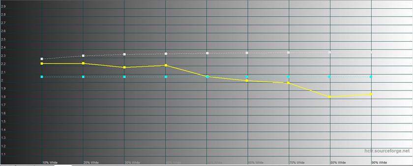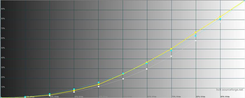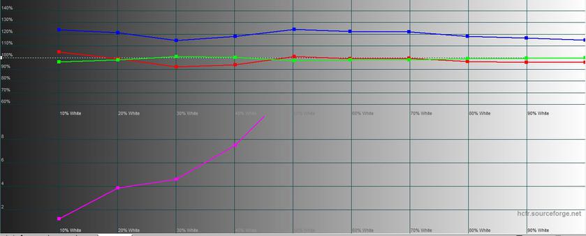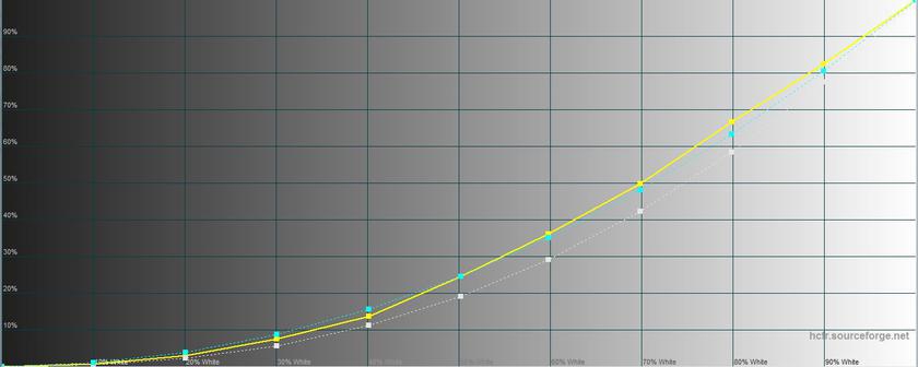 "Яркий" режим на самом деле показал среднюю яркость, а по цветовым характеристикам и гамме очень похож на стандартный, но с ещё большей цветовой ошибкой – 9,0 и 11,8. Так что полезность его сомнительна.