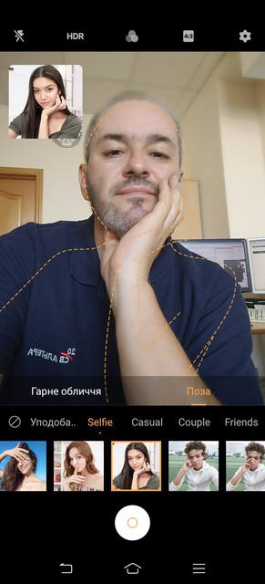 Фронтальная камера имеет разрешение 32 МП и делает очень приличные снимки, эффекты "Боке" и "Красота" те же, что для тыльной камеры.