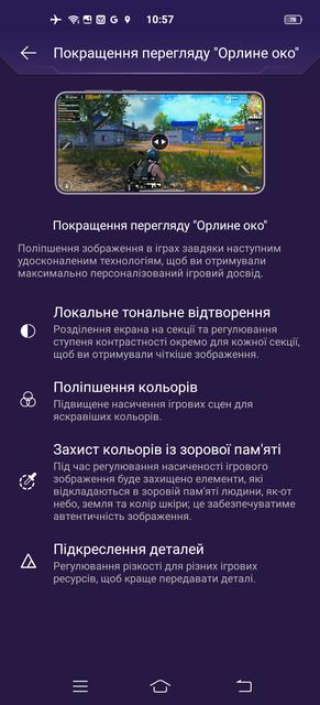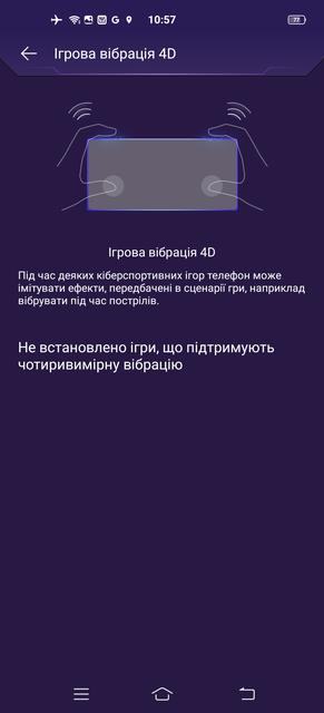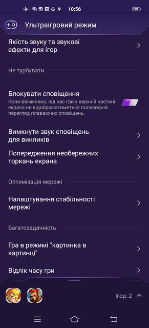 В-третьих, буква G в маркировке чипсета – не просто так. Улучшенные игровые возможности процессора обеспечены широкой программной поддержкой. Специальный раздел меню "Ультраигровой режим" содержит массу настроек, позволяющих максимально мобилизовать ресурсы смартфона для игры, улучшить параметры изображения и звука, а также минимизировать отвлекающие факторы – отключить уведомления и игнорировать входящие вызовы (кроме предварительно настроенных исключений). Часть этих функций доступна в любой момент во время игры – свайп от левого края дисплея выводит меню "Игровой помощник" с соответствующими кнопками.