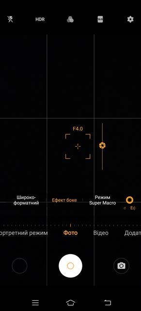 В режиме "Фото", который активен по умолчанию, работает гибридный зум, задействующий три из четырех имеющихся фотомодулей – сверхширокоугольный (2), основной (1) и телеобъектив (4). Портретный объектив (2) здесь не задействуется. При этом значения зума, которые не может обеспечить оптика, достигаются программным масштабированием изображения, что хорошо видно при увеличении 10х и более. В выпадающем меню эффектов, расоложенным справа над линейкой режимов съёмки, дублируется зум 0,6х ("Широкоформатный"), а также включается эффект боке и режим "Супермакро".