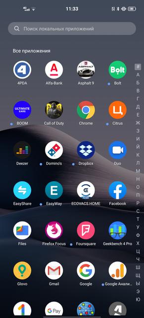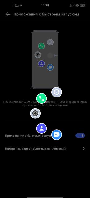 В оболочке предусмотрены два варианта навигации по системе: панель с кнопками и уже ставшие привычными жесты. Из интересных дополнительных фишек — есть панель быстрого запуска приложений. Запускается если задержать палец при жесте от бокового края экрана. Набор приложений можно настроить.