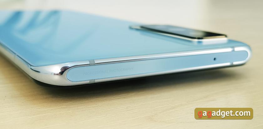 Ещё одна интересная особенность смартфона — его задняя панель. Она сделана из матового стекла. Выглядит интересно и практически не собирает отпечатки пальцев. В последнее время производители начали использовать подобное матовое стекло во флагманах и смартфонах верхней части среднего ценового сегмента. Хотя сама по себе штука не новая. Первой на моей памяти использовала такое стекло компания Sony в своём флагманском смартфоне Xperia Z5 в далёком 2015 году. В любом случае, такой вариант интереснее и практичнее привычного глянцевого стекла. Цвет называется "небесно-голубой" и он переливается под разными углами вплоть до зелёных оттенков. Для любителей классики существует более стандартный глянцевый вариант чёрного цвета.
