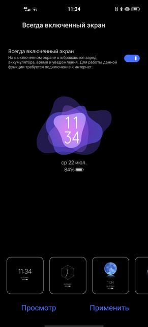 Поддерживается функция Always on Display с различными вариантами заставок: