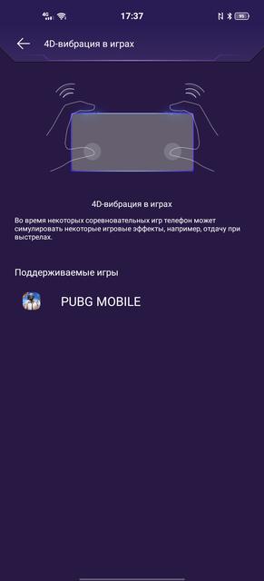 У vivo также присутствует фирменная игровая утилита, которая в целом имеет практически стандартный набор возможностей. В частности, оптимизация системы при запуске игр, отключение уведомлений, хаб со всеми установленными играми. Из необычных функций есть режим "бота", в котором игра продолжает работать при выключенном экране, 4D-вибрация (так и не понял на практике, что она даёт), различные режимы звука и режим картинка-в-картинке.