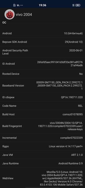 | Операционная система | Android 10 + Funtouch OS 10.5 |