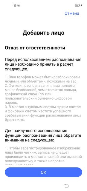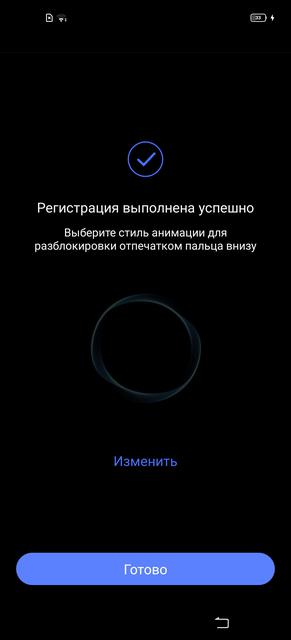 Для разблокировки смартфона используется комплект из распознавания лица и дактилоскопического сканера под экраном. Лицо распознаётся силами фронтальной камеры, работает достаточно шустро. Для распознавания при недостаточном освещении есть функция "заполняющий свет экрана". Но сканер отпечатков пальцев всё-таки надёжнее. И в данном случае удобнее. Он оптический (то есть с мокрыми пальцами не дружит), срабатывает молниеносно и без ошибок. Это — один из самых быстрых подэкранных сканеров, что попадались за последнее время.