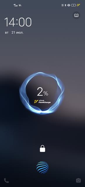 Смартфон питается от аккумулятора на 4200 мАч. Этого оказалось вполне достаточно, чтобы смартфон мог прожить 1.5 суток на одном заряде. По режиму использования — приблизительно так: минут 15-20 разговоров, штук 40 фотографий, около получаса игр, соц. сети, почта, веб-серфинг и YouTube в большом количестве. Смартфон был снят с зарядки в полночь и в следующий раз поставлен на зарядку к обеду следующего дня. vivo X50 поддерживает фирменную быструю зарядку FlashCharge 2.0 на 33 Вт (соответствующий БП в комплекте). Компания обещает 58% за 30 минут. В реальности показатели практически соответствуют заявленным. За 15 минут аккумулятор зарядился на 30%, за 30 минут — 55%, а на полную зарядку ушло чуть менее 70 минут. В целях продления времени работы от аккумулятора, можно использовать режимы энергосбережения.