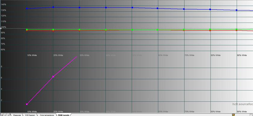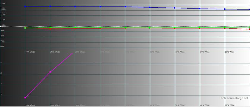 В "Стандартном" режиме цветовой охват и цветопередача близки к "Яркому" режиму. Максимальная яркость составляет 423.141 кд/м2.