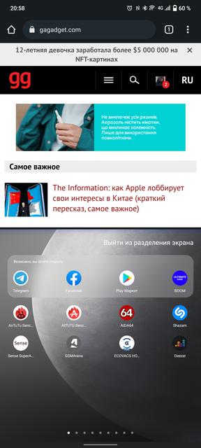 Диспетчер приложений есть двух вариантов: классические горизонтальные карточки, либо вертикальное размещение в два столбца. Разумеется, есть двухоконный режим. И кое-какие дополнительные жесты: