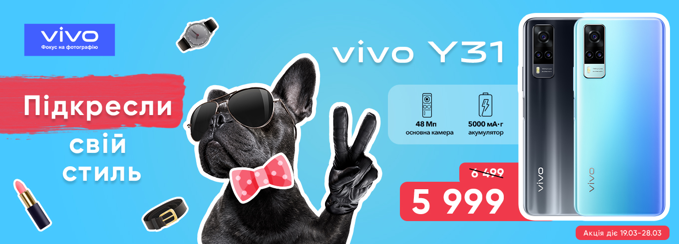 [Киев, 19 марта 2021 года] – vivo объявляет о промо цене на одну из самых популярных моделей Y31. C 19 по 28 марта цена на vivo Y31 5 999 грн, вместо 6 499 грн.