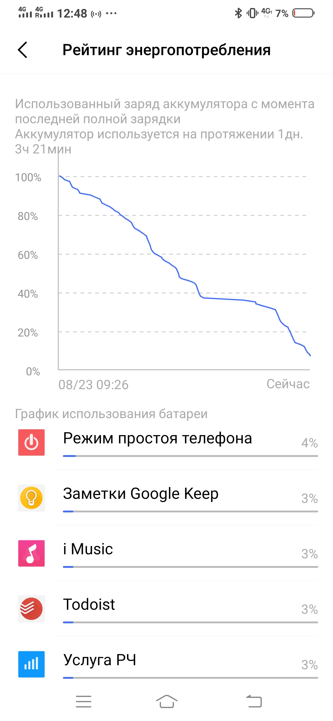 По моим наблюдениям, смартфон в таком режиме держится где-то рабочий день. Вообще, мне показалось, что энергоэффективность в режиме ожидания - это то, над чем компании еще стоит поработать. Недавно побывавший у меня в руках Huawei P Smart Z был в этом плане лучше, хотя процессоры обоих устройств сравнимы по характеристикам и техпроцессу. И оба очень навязчиво предлагают закрывать приложения, которые слишком неэффективно расходуют заряд.