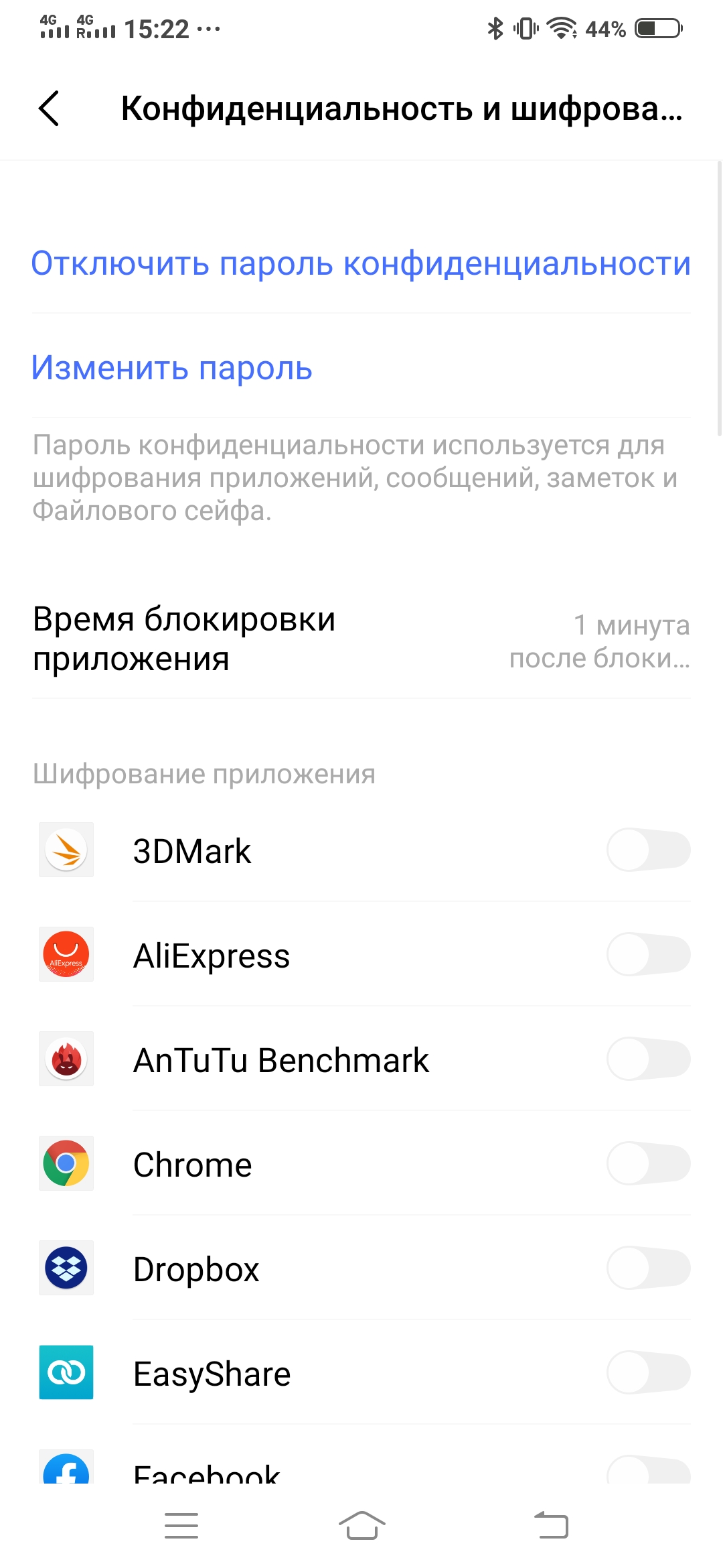 У Vivo есть и сканер отпечатков пальцев, и система распознавания лица, но оба непростые. Сканер находится на лицевой панели под экраном. А распознавание лица - на выезжающей селфи-камере. Кстати, что удивительно, его можно использовать для разблокировки смартфона, производитель не стал отказываться от этой фичи, а уже дело пользователя - пользоваться или нет. Потому что распознавание происходит мгновенно, но какие-то доли секунды уходят на то, чтобы камера выехала. С отпечатком получается быстрее. В настройках смартфона можно выбрать способ вызова разблокировки по лицу. И даже назначить разблокировку по отпечатку и лицу. Для смартфона или для любого приложения.