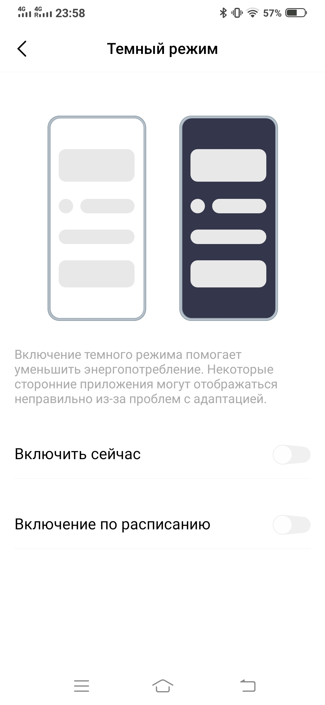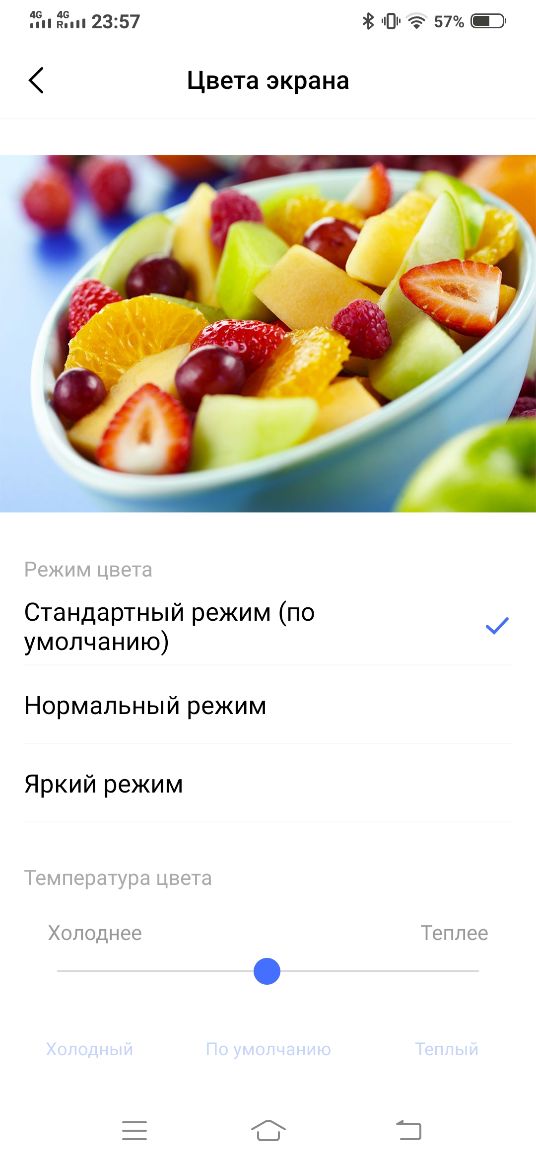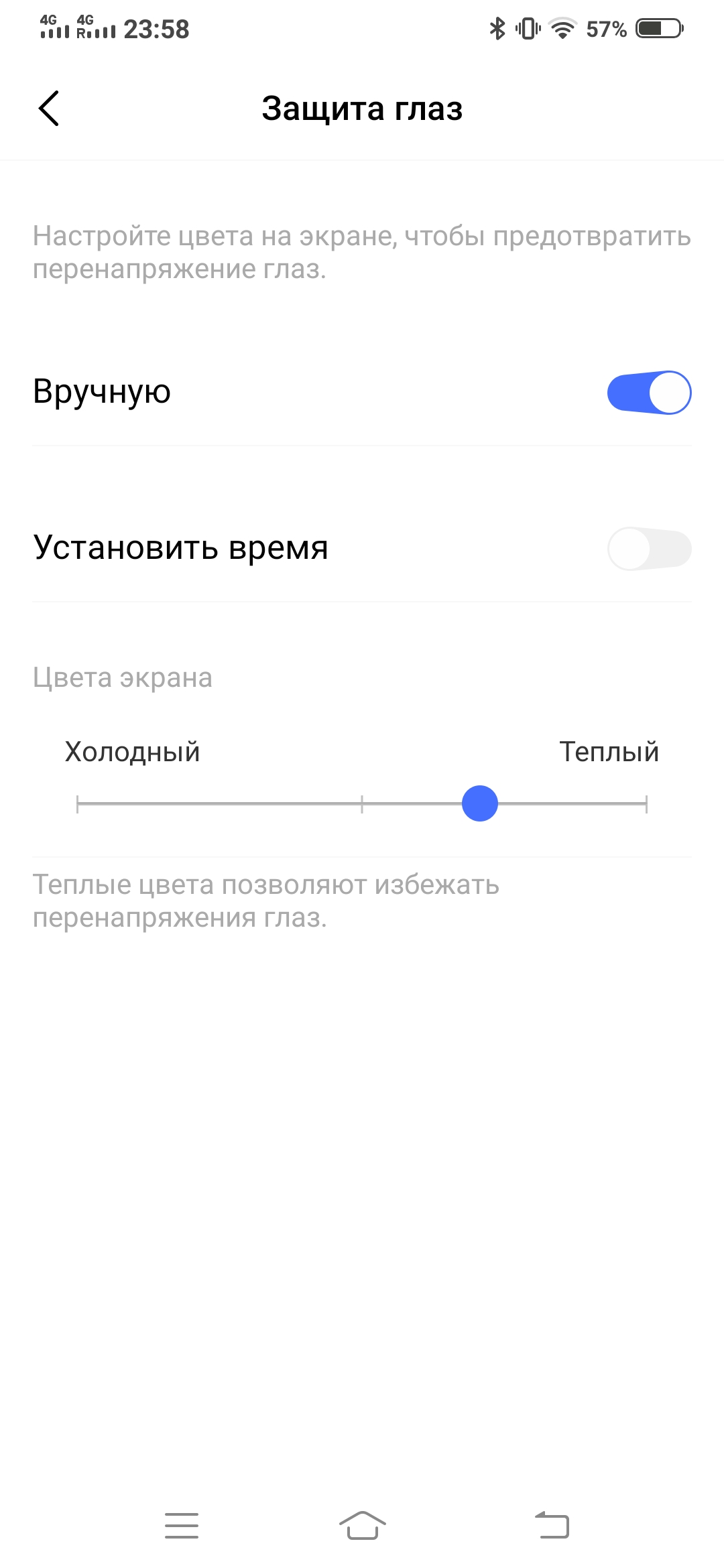 Я обычно всегда включаю режим защиты зрения, привыкла на всех своих устройствах к теплой цветовой гамме экрана. Расплачиваться за комфорт для глаз приходится читаемостью на солнце. В таком режиме летом я могла пользоваться Vivo V15 Pro на улице, но совсем ярким днем приходится снимать солнцезащитные очки. Если режим отключить — то читаемость улучшается.