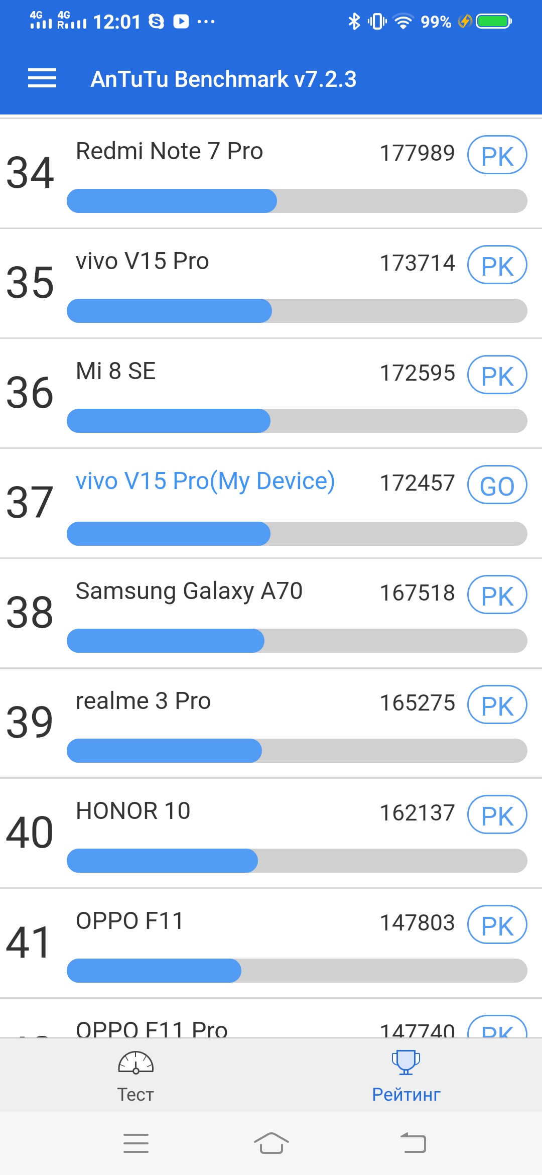 У Vivo V15 Pro аккумулятор емкостью 3700 мАч. Я не могу назвать себя самым активным пользователем, но все же делаю много дел на смартфоне - могу набрасывать черновики текстов, смотреть что-то на Youtube, пользуюсь приложениями для шопинга, слушаю музыку, громко и много, что-то ищу, пользуюсь картами, избегаю режима энергосбережения.