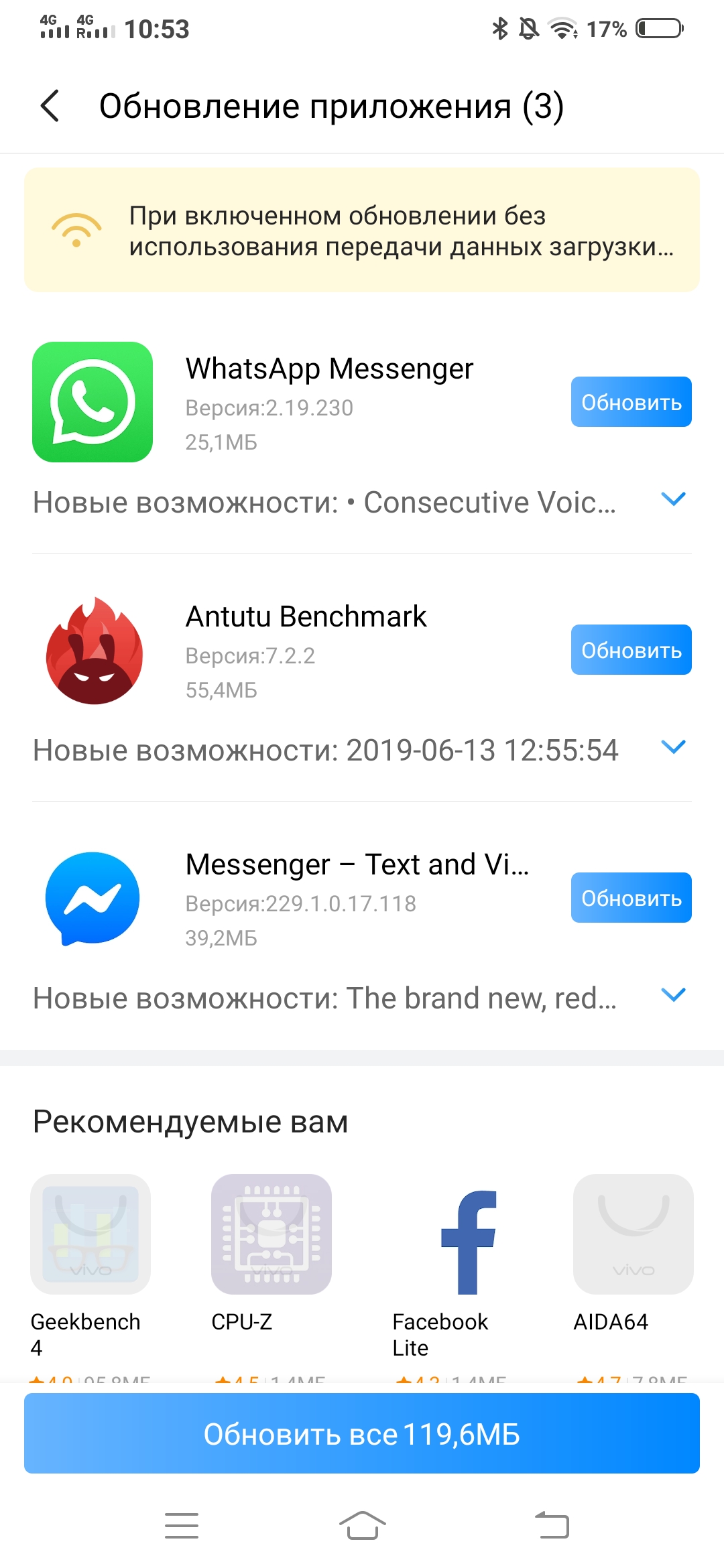 У Vivo есть собственный магазин приложений V-Appstore. И что удивительно — смартфон предлагает устанавливать обновления приложений именно из него. Даже тех, которые я своими руками ставила из Google Play. Также пользователям смартфона доступно фирменное «облако» Vivo Cloud, есть встроенный браузер с блокировщиком рекламы, магазин тем для смартфона, отдельное приложение, я так понимаю, зеркало сайта компании и сервис для очистки памяти.