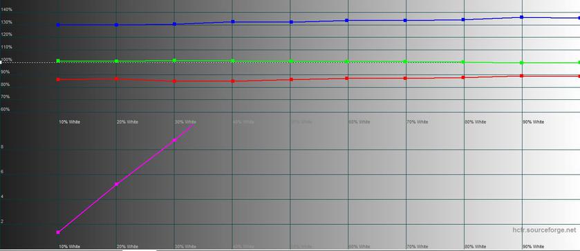 В "стандартном" режиме цветовой охват близок к sRGB, а цветопередача ближе к эталонными показателям. Но максимальная яркость чуть ниже: 465.757 кд/м2.