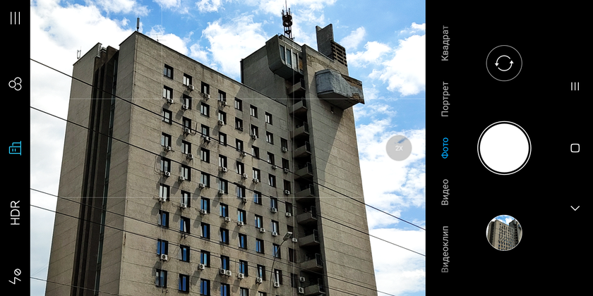 Как я уже писал выше, основная камера включает в себя модуль 12 МП Sony IMX363 1/2.55", 1.4µm, с диафрагмой f/1.8, оптической стабилизацией и фазовым автофокусом плюс 12 МП Samsung S5K3M3 1/3.4", 1.0µm, с телеобъективом f/2.4 для зума и размытия фона. Умеет снимать видео 4K и FullHD 240fps. Фронтальная камера — 5 МП, f/2.0, 1.4µm. Приложение камеры не слишком видоизменилось по сравнению с другими моделями Xiaomi. По большей части добавились необходимые элементы управления: к примеру, включатель Ai. Значок Ai меняется на нужную иконку (город, ночь, облака) и так далее если смартфон распознал сцену. HDR можно поставить на авто. Есть разнообразны фильтры и режимы съёмки. Не самое удобное размещение "фронталки" решили самым простым методом. При переключении на неё, приложение предлагает перевернуть смартфон:
