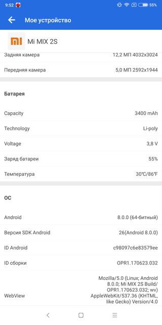 Смартфон работает на ОС Android 8.0 Oreo с оболочкой MIUI 9.5 (9.2.7.0), глобальный вариант с обновлениями по воздуху. Оболочка функционально и визуально близка к MIUI 9 прошлых версий. К примеру, 9.2, которую мы видели в Redmi 5. Интересующиеся могут официально установить бета-версию MIUI10 (которая ощутимо отличается от текущей) или бету Android P, кому нравится чистый Android. Но для этого нужен разблокированный загрузчик. Как это сделать — написано на официальном сайте и ещё куче ресурсов.