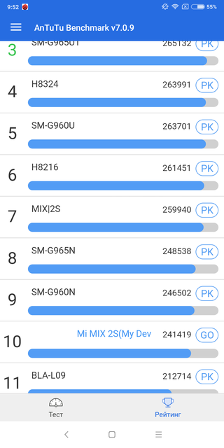 Результаты в синтетических тестах также ничуть не удивляют: смартфон занимает места в верхней части рейтингов: