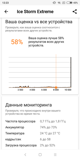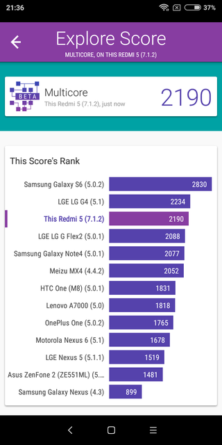 Особых проблем с приложениями смартфон не испытывает, но и молниеносным его назвать нельзя. Оболочка не тормозит, но запуск тяжёлых приложений требует чуть больше времени, чем хотелось бы. Хотя после запуска всё работает нормально. Вот такие результаты Xiaomi Redmi 5 демонстрирует в тестах производительности: