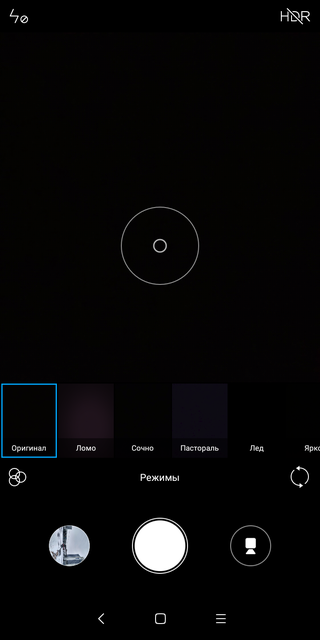В смартфоне установлена основная камера 12 MP с диафрагмой f/2.2, размер пикселя — 1.25 μm. Фазовый автофокус и вспышка. Фронтальная камера на 5 мегапикселей. Приложение камеры простое в использовании. Все основные органы управления есть на главном экране: переход в режим видео, переключение камеры, работа вспышки, HDR и фильтры. Есть дополнительные режимы съёмки, включая ручной. Настройки камеры решили вынести сюда же:
