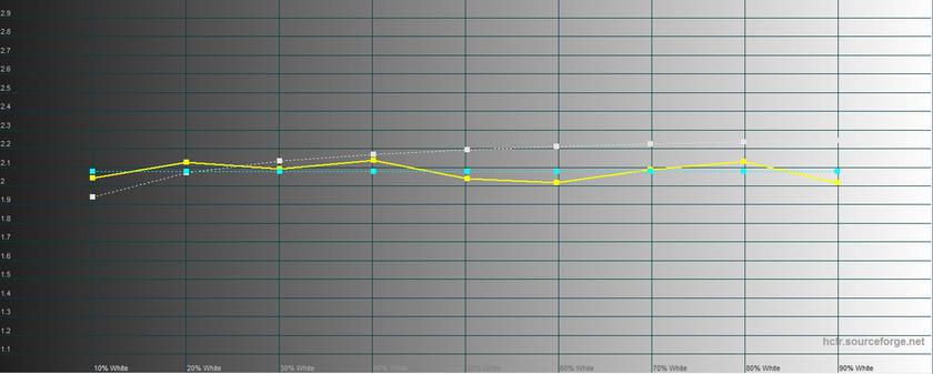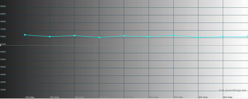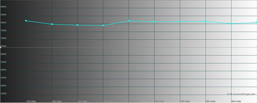 В режиме повышенной контрастности максимальная яркость составила 425.687 кд/м2, яркость чёрного поля — 0.496 кд/м2, а контрастность — 858:1. В этом режиме картинка холодновата, есть перебор синего, цветовая температура — около 8000K (при эталонных 6500K):