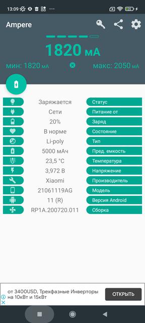 Зарядка считается быстрой, но по нынешним меркам не особо впечатляет. 50% ёмкости аккумулятор набирает за 50 минут, а для его полной зарядки понадобится почти два часа. Зато здесь есть интересная фишка: добрый Radmi 10 готов делиться энергией и заряжать другие устройства. Для использования смартфона в качестве импровизированного пауэрбанка понадобится любой переходник USB-C на USB-A (в комплекте его нет). Заряжать можно как другие Android-смартфоны, так и iPhone или вообще наушники.