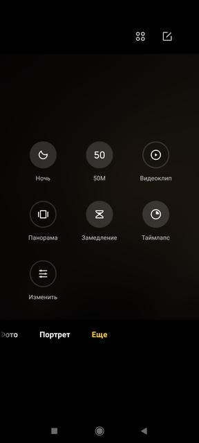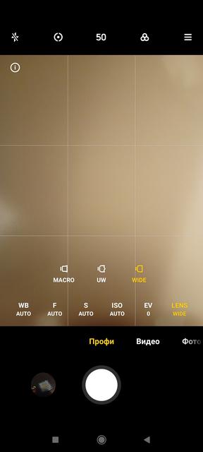 В интерфейсе камеры, кроме режимов для фото и видео, в главное меню вынесены пункты «Портрет», «Профи» и «Ещё» (при желании это меню можно перенастроить). В первом к снимкам применяется эффект размытия, в третьем собраны остальные режимы (ночной, замедленный, таймлапс, панорамный, короткое видео и 50-мегапиксельный), а вот второй открывает много возможностей. Так, «профессиональный» интерфейс позволяет принудительно переключиться на любой их трех модулей камеры (включая макро), настроить баланс белого (по пресетам или вручную от 2000 до 8000К), настроить выдержку (от 1/1000 до 30с), чувствительность (50-6400 единиц ISO), экспокоррекцию в пределах ±4 ступеней и даже ручной фокус. Если нужно довериться автоматике, то есть возможность выбрать между усредненным, центровзвешенным и точечным режимами замера экспозиции. Режим определения ошибок экспозиции покрывает штриховкой засвеченные области в реальном времени, это полезно, но хотелось бы видеть и гистограмму. 50-мегапиксельный режим включается одним касанием, в нем пиксели не группируются, а разрешение снимков вырастает с 3072х4080 до 6144х8160.