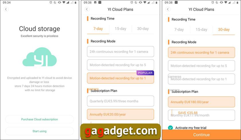 Она способна работать в режиме онлайн-трансляции и записывать видео на карту памяти (параллельно архивируя файлы в облачном сервисе YI, где объем хранения ограничен лишь тарифом подписки). Вообще попытка подвязать подписку на облачное хранение выглядит навязчивой бизнес-идеей. С другой стороны — покупать ее вовсе необязательно, а даже 1-2% покупателей камеры, превратить в подписчиков сервиса с регулярной оплатой — тоже хлеб. Да и наверняка найдутся те, кому такой вариант платного сервиса с абонплатой придется по душе — работает все действительно здорово. И может для небольшого (условно домашнего) офиса такое решение охранного видеонаблюдения будет выглядеть здравой идеей.