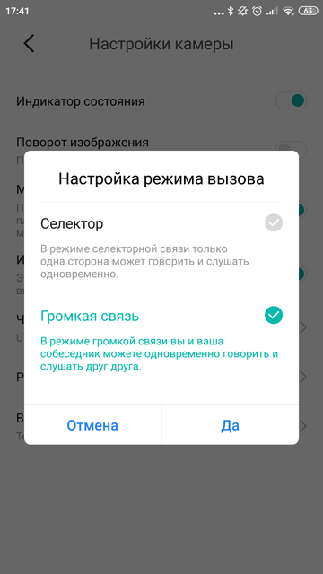 Значок шестеренки ведет в раздел с настройками камеры. Тут довольно много возможностей. Камеру можно включить или выключить, или выключить только микрофон, или деактивировать инфракрасную подсветку, которая включается при недостаточном освещении, или же отключить светодиодный индикатор (чтобы сделать камеру совсем скрытой). Самой камере можно выбрать название (полезно, когда камер используется несколько). У системы голосовой связи есть режимы одновременного и поочередного общения, а картинку с камеры можно повернуть на 180 градусов, если само устройство подвешено вверх ногами).