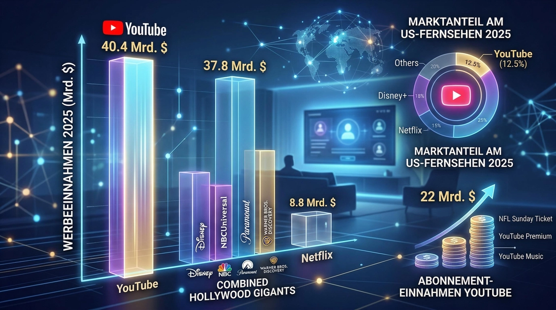 YouTube теперь генерирует больше дохода от рекламы, чем четыре крупнейших конкурента из Голливуда: Disney, Paramount, NBCU и Warner Bros. вместе взятые.