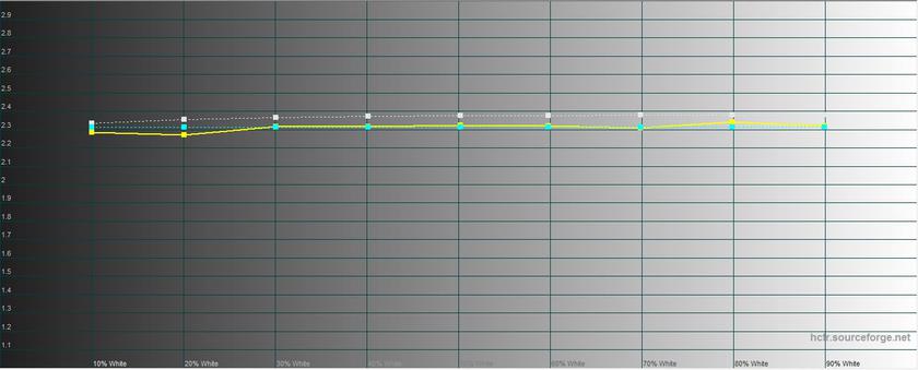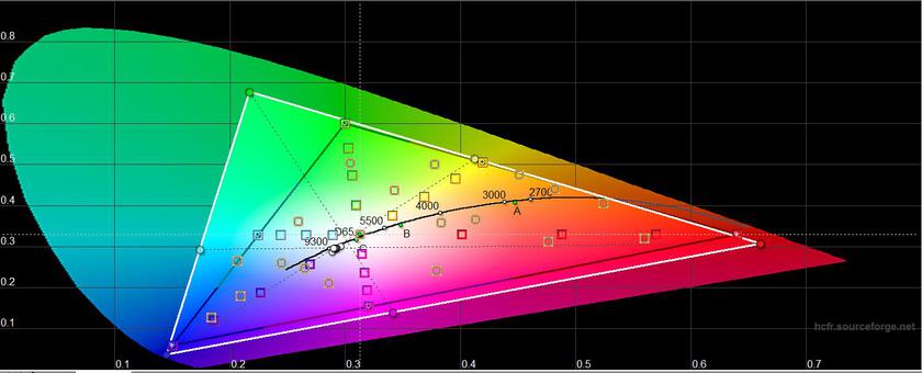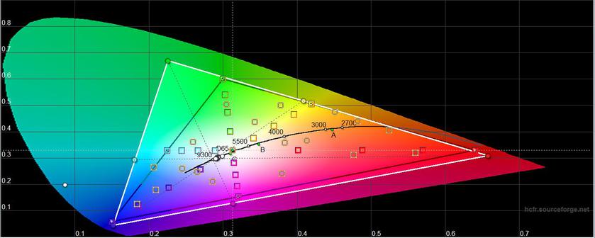 В "Ярком" режиме максимальная яркость составила 430.019 кд/м², цветовой охват и цветопередача близки к предыдущему режиму.