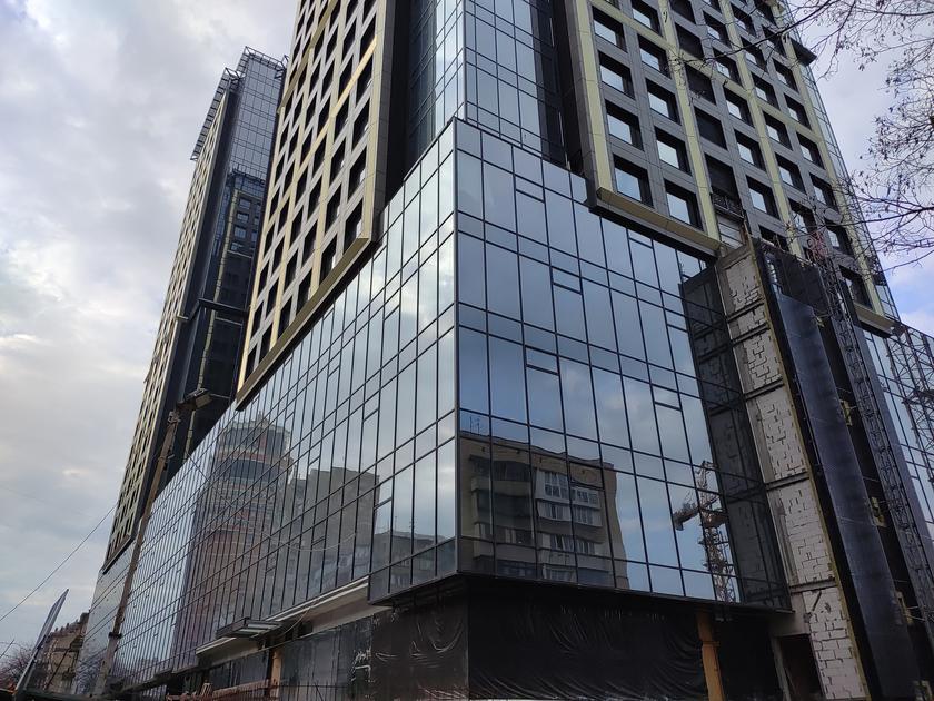 По используемым в конструкции материалам никаких неожиданностей. Экран и заднюю крышку закрывает стекло, а рамка металлическая. Окрашена чёрной матовой краской. При этом, торцы имеют "срезанную", а не обтекаемую форму. По кнопкам и разъёмам всё почти привычно. Снизу — Type-C, внешний динамик, лоток и микрофон. Сверху — дополнительный микрофон. Левая грань лишена чего-либо, а справа — кнопки управления громкостью и питанием, к которым по краям добавили сенсорные триггеры.